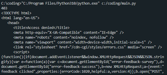 403 에러와 함께 job 에 관한 정보가 아닌 anti-bot 페이지만 나온다.