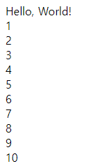 이전 문제에 사용했던 Hello, World! 구문 옆부터 1이 출력되어