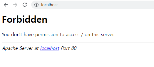 위 그림과 같이 htdocs 경로의 index.php 파일 삭제 후 아래와 같은 창이 뜬다.