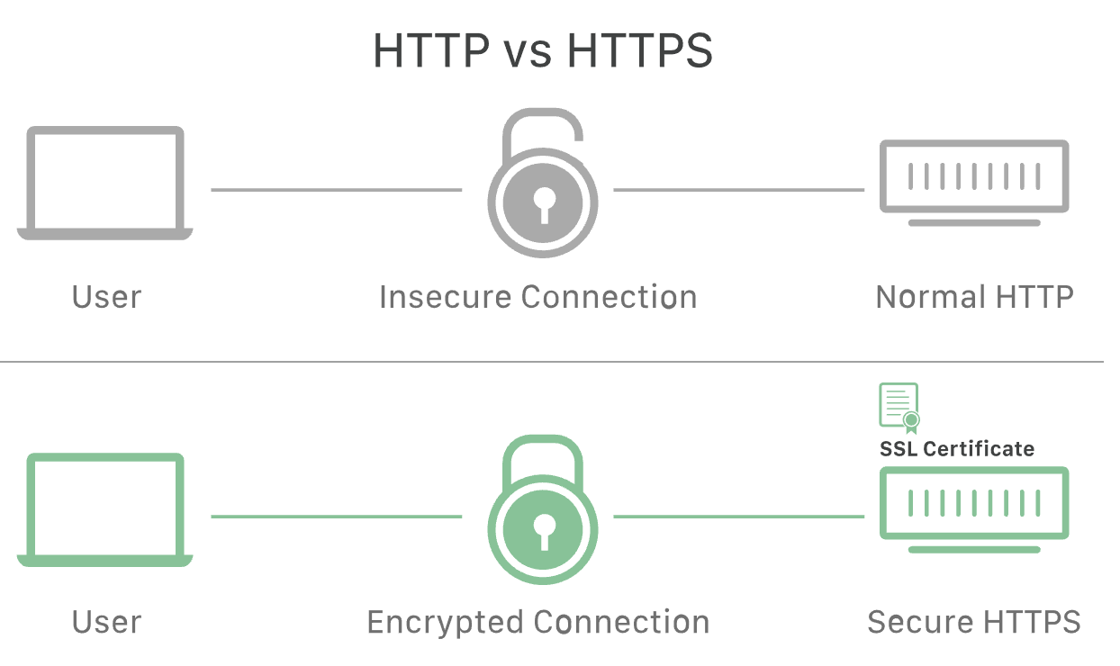 웹사이트가 SSL/TLS 인증서로 보호되는 경우 HTTPS가 URL에 표시된다.