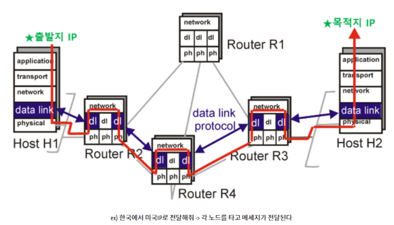 - 라우터를 통해 이동할 경로를 선택하여 IP 주소를 지정하고, 해당 경로에 따라 패킷을 전달해준다. (=패킷을 네트워크 간의 IP 를 통하여 데이터를 전달한다)