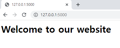 다시 코드를 멈췄다 코드 재실행 후 크롬창 열고 주소창에 127.0.0.1:5000 입력해서 들어가면 아래와 같이 출력된다.