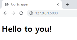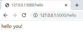 새로운 크롬창을 열어서 주소창에 127.0.0.1:5000/hello 를 입력해서 들어간다.