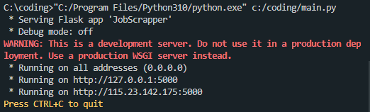 주의 할 점은 기존에 코드가 실행되어 있으면 CTRL + C 를 눌러서 멈춘 후 다시 실행해야 작동된다는 것이다.