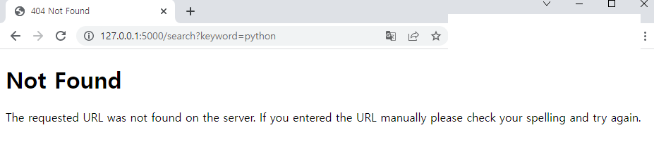 결과는 Not Found 지만 url 은 /search?keyword=python 이 되었다.