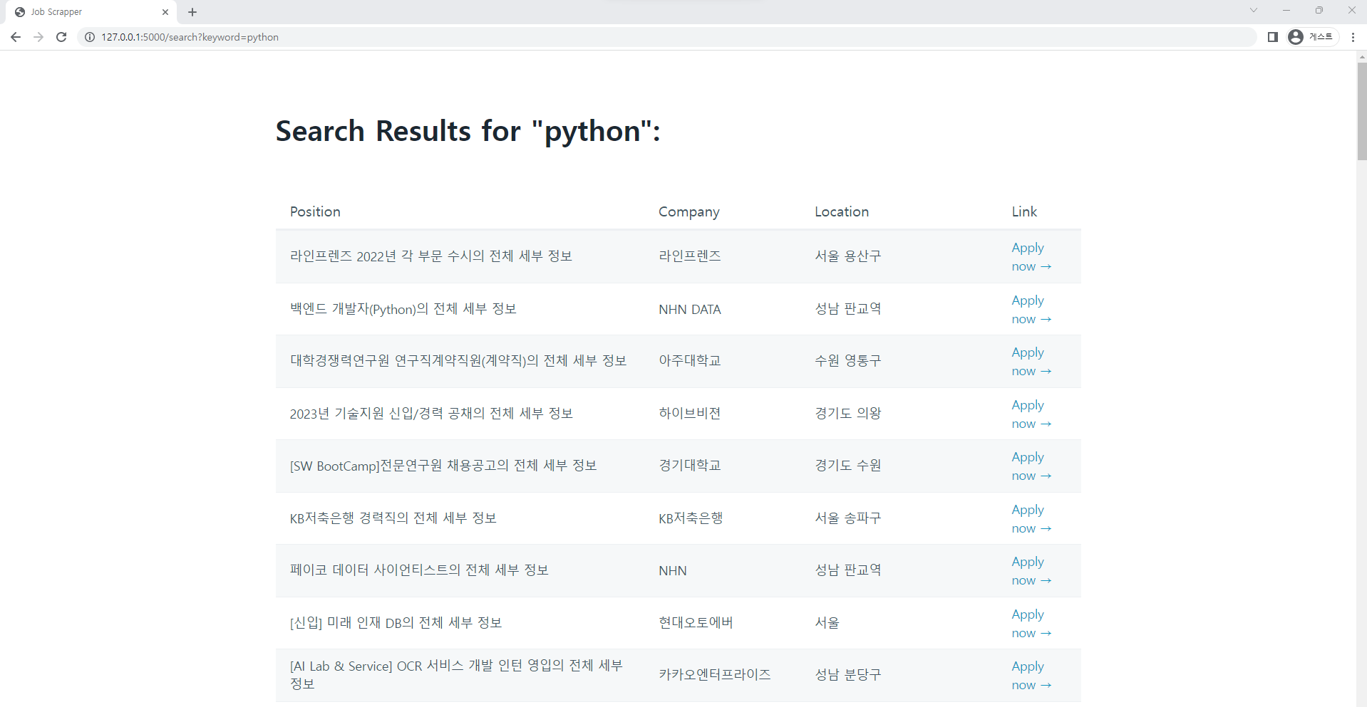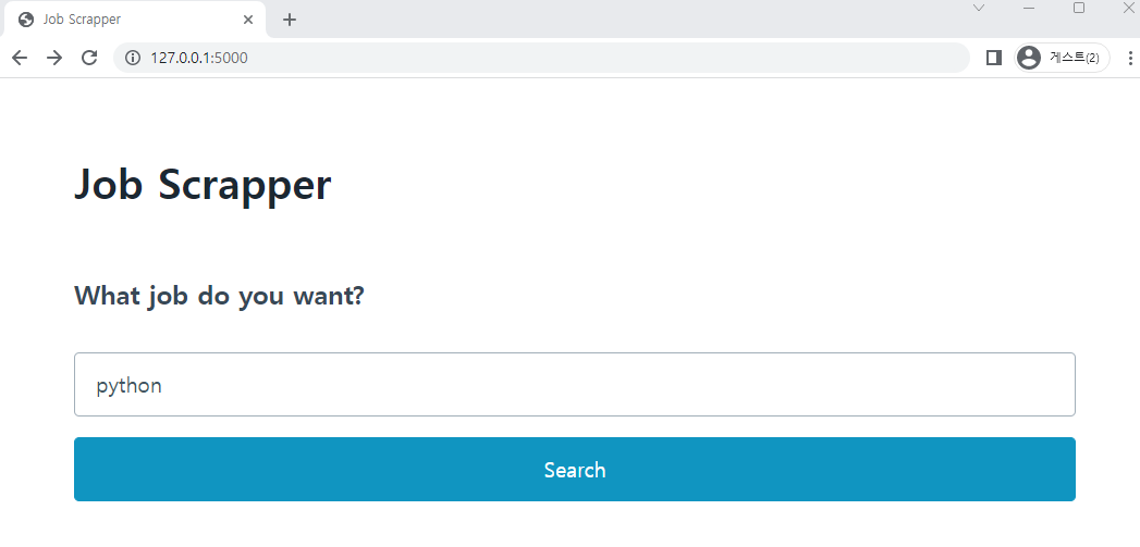 크롬창을 열고 127.0.0.1:5000 에 접속하여 python 을 검색한다.