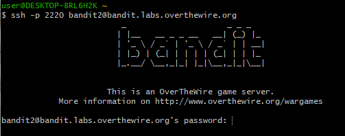 $ ssh -p 2220 bandit2@bandit.labs.overthewire.org