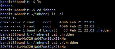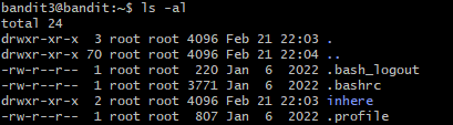다음 레벨의 패스워드는 inhere 디렉터리의 숨김파일에 저장되어 있다.