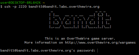 $ ssh -p 2220 bandit5@bandit.labs.overthewire.org
