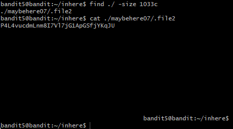 그러므로 현재 inhere 디렉터리의 20개의 폴더를 일일히 찾을 필요 없이, find 명령어로 현재 디렉터리의 크기가 1033 bytes 인 파일을 검색해본다.