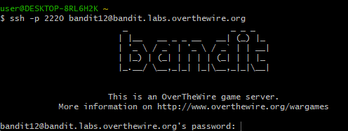 $ ssh -p 2220 bandit12@bandit.labs.overthewire.org