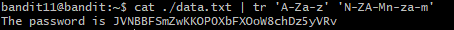 The password for the next level is stored in the file data.txt, where all lowercase (a-z) and uppercase (A-Z) letters have been rotated by 13 positions