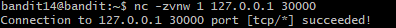 The password for the next level can be retrieved by submitting the password of the current level to port 30000 on localhost.