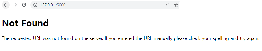 위 코드를 실행하고 크롬창에 127.0.0.1:5000 또는 115.23.142.175:5000 에 접속하면